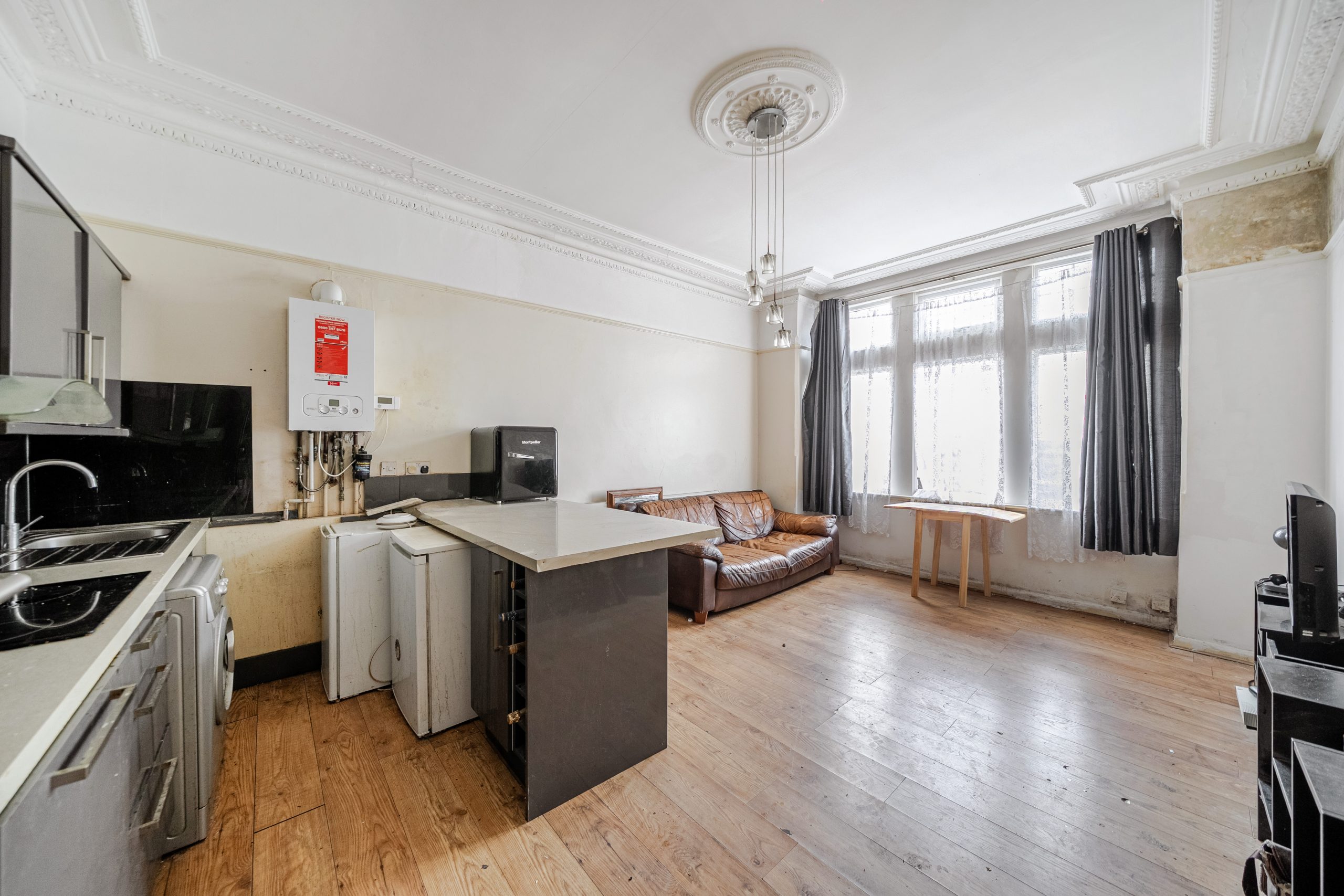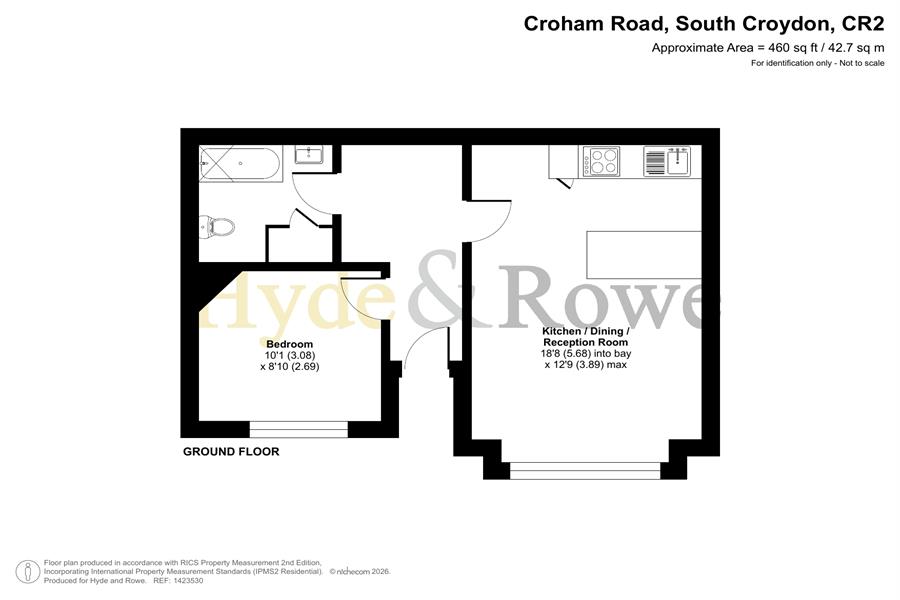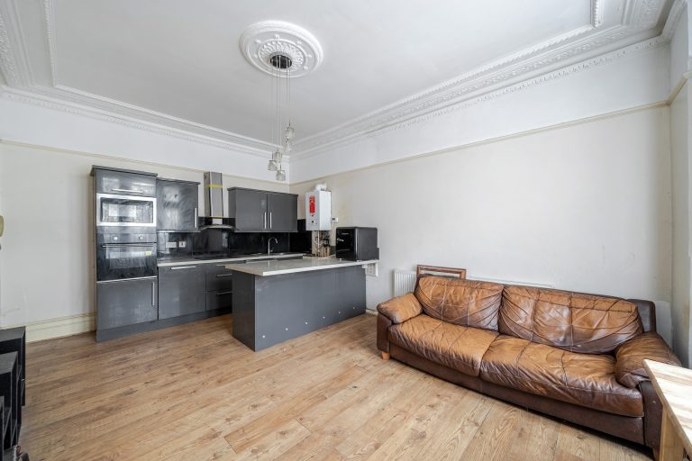 Benefitting from it's own private access and off road parking space, this property has a large and bright entrance hall leading to one double bedroom with a bathroom/WC and large open plan kitchen to lounge (18.8ft x 12.9ft). The property boasts high ceilings with period features with a communal garden to the rear.